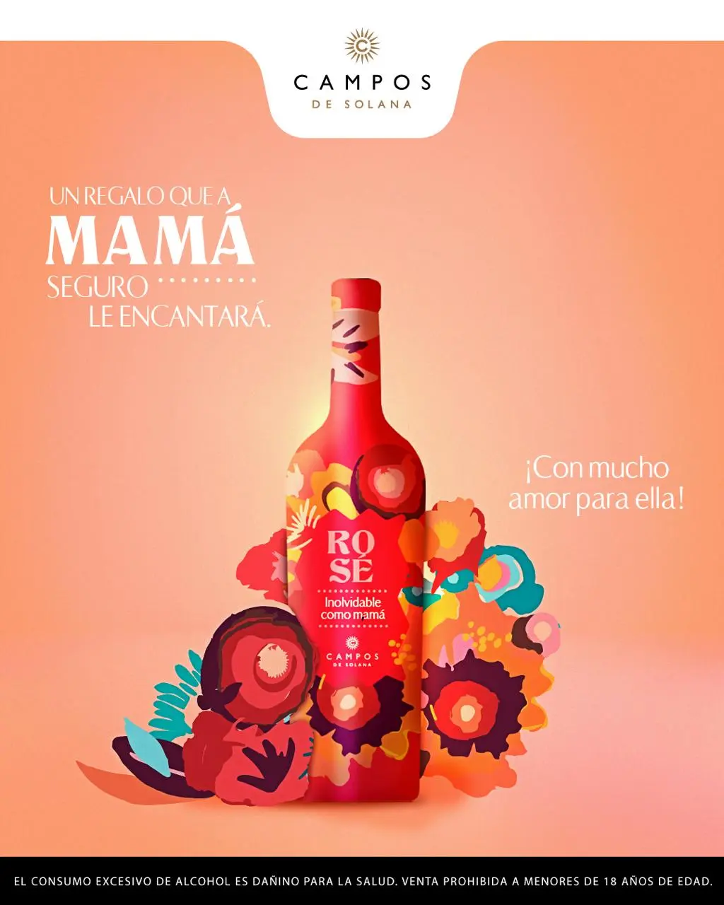 El Rosé de Campos de Solana es fresco, ligero y lleno de alegría. Su color rosa brillante y sus notas florales lo hacen inolvidable, al igual que los momentos compartidos con mamá.