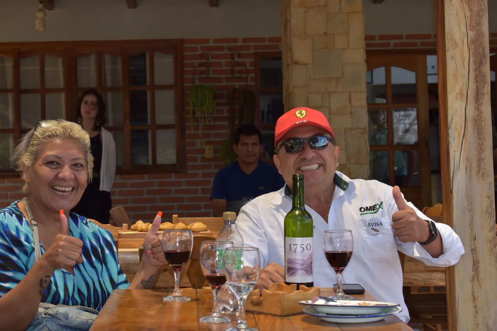 Luego de un paseo por las viñas y la bodega, fuimos al club house, donde una hermosa terraza te recibe para compartir y brindar con vinos 1750, empanadas y buena música.